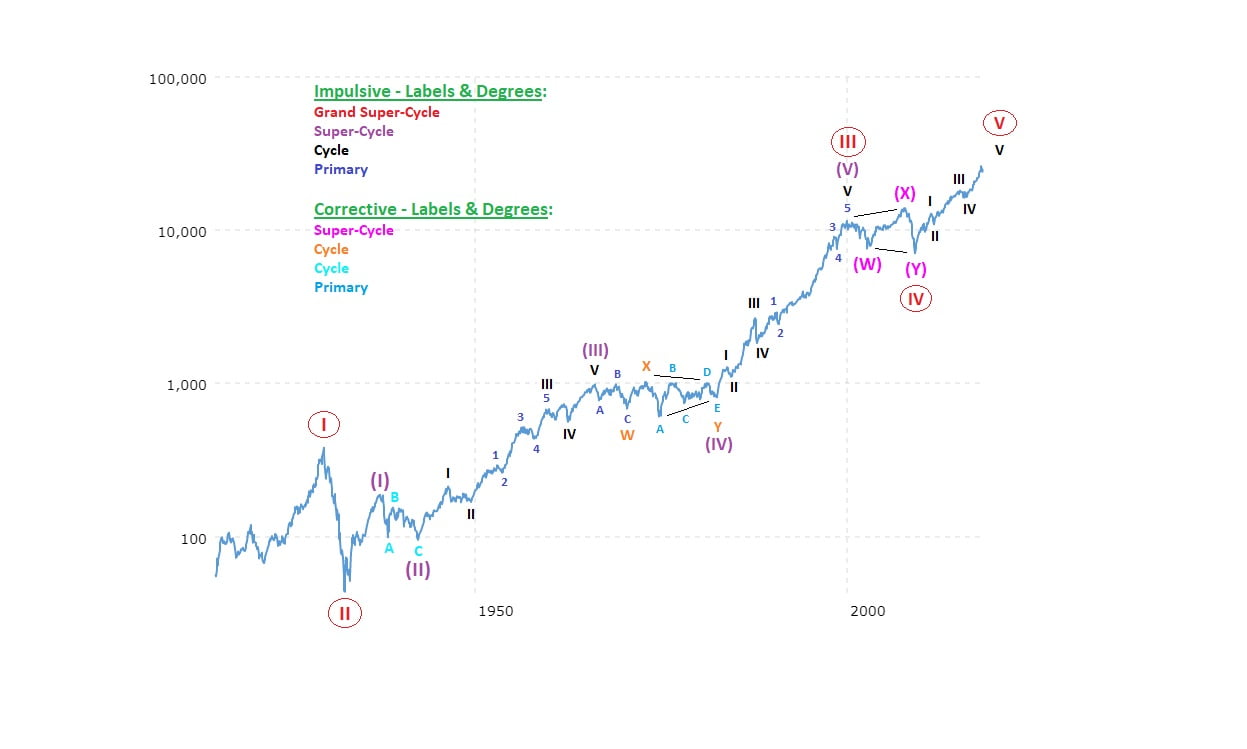 NAS100 has been labeled as a Complex Pattern, with one structure in Intermediate (W) (purple) and another one in Intermediate (X) (purple), while Intermediate (Y) (purple) would remain as a pending swing.